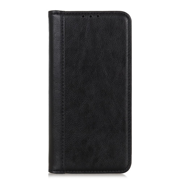 Bescherm je smartphone in stijl met dit portemonneehoesje van splitleer met lycheestructuur. Met kaartvakjes, een veilige magneetsluiting en een geïntegreerde houder combineert hij functionaliteit en stijl voor dagelijks gebruik.
