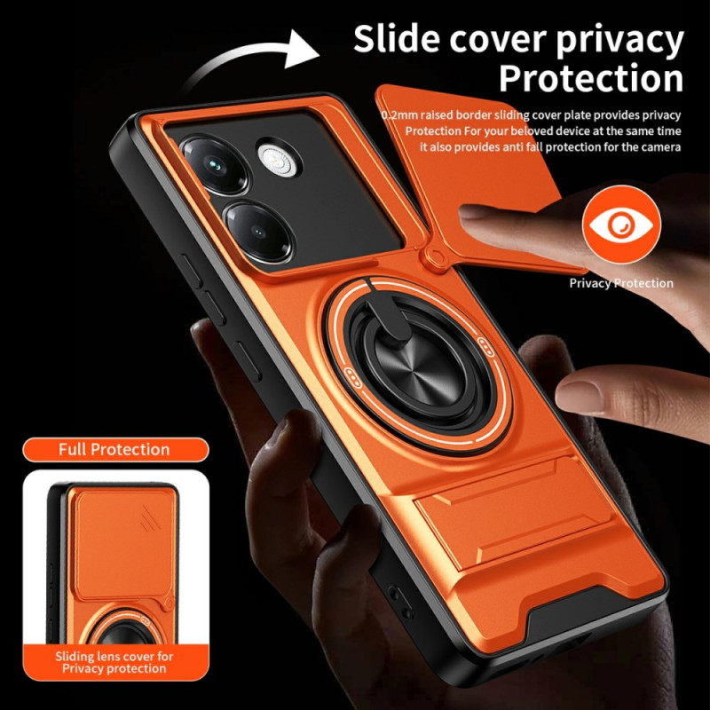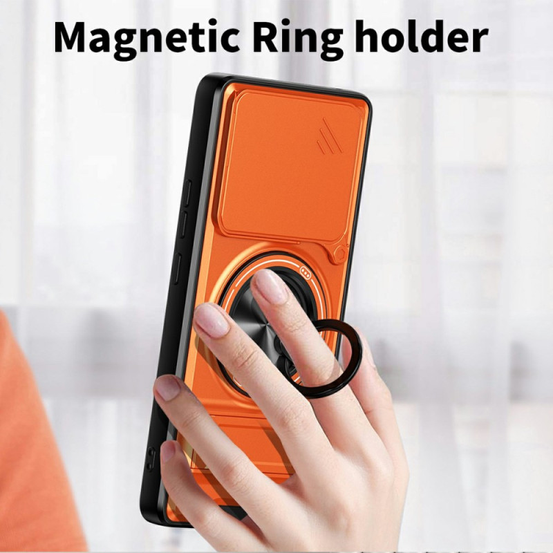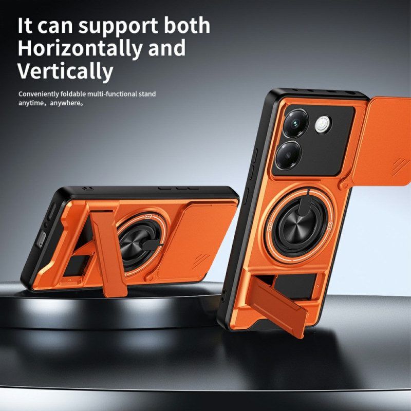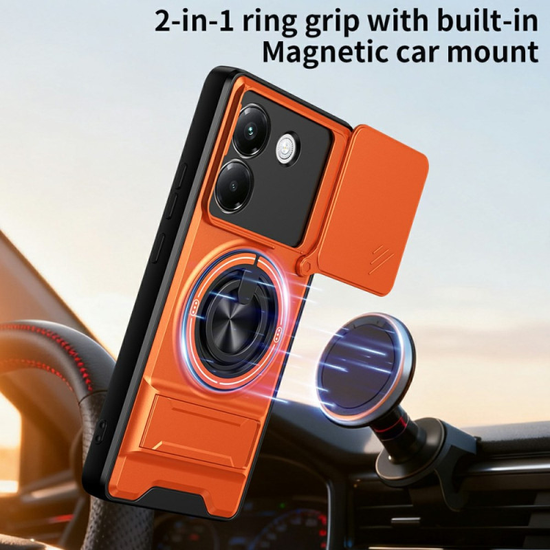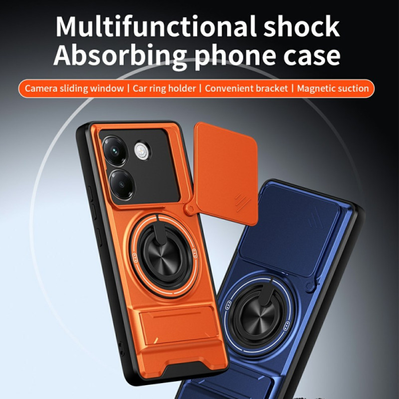 Protégez votre Xiaomi Poco M7 Pro 5G avec cette coque magnétique multifonction. Dotée d'un anneau support rotatif 360°, d'un support pliable pour visionnage mains libres et d'une protection caméra coulissante innovante. Double couche résistante aux chocs.