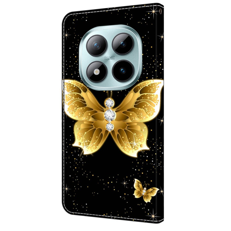 Bescherm je smartphone in stijl met deze flap case versierd met gouden vlinders. Met een praktische uitklapbare houder, kaartsleuven en een veilige magneetsluiting combineert hij stijl en functionaliteit voor dagelijks gebruik.