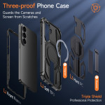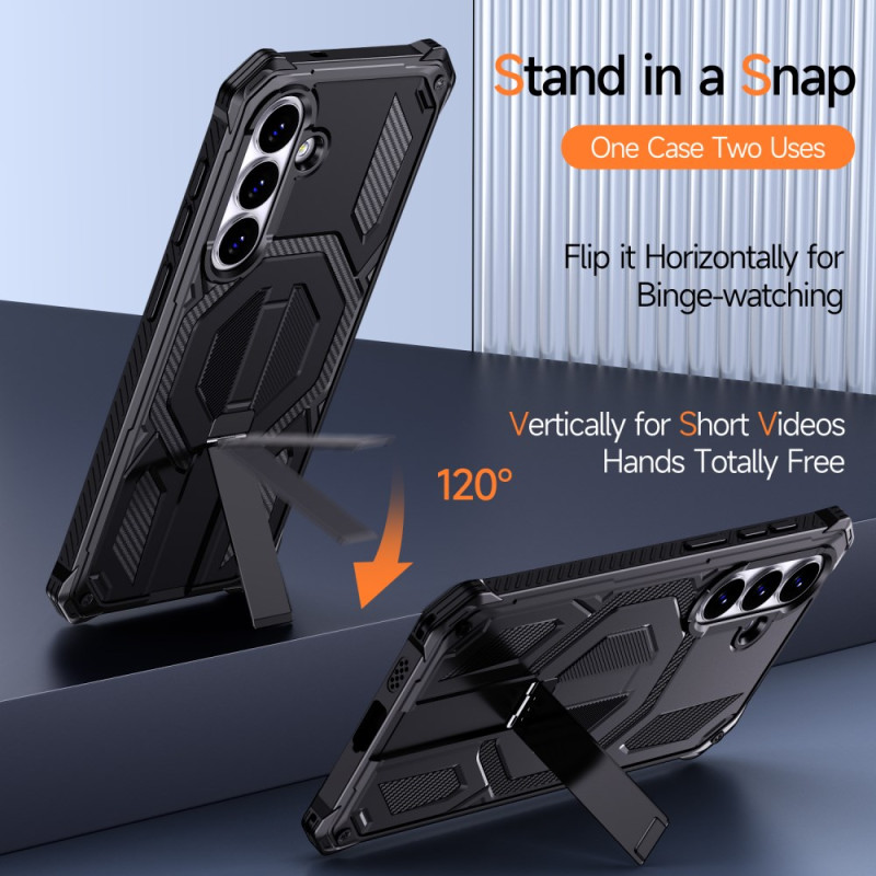 Protégez votre Samsung Galaxy S26 Plus avec cette coque magnétique hybride dotée d'une béquille intégrée. Construction triple couche TPU+PC, coins renforcés à coussin d'air et système magnétique puissant pour une protection optimale contre les chutes et l'usure quotidienne.