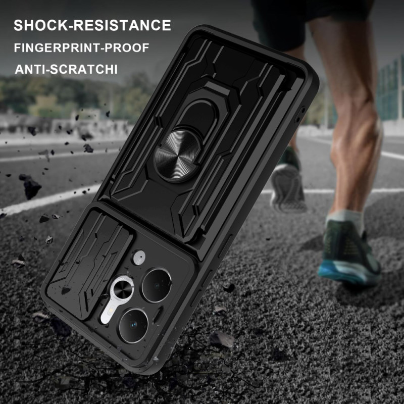 Ontdek onze innovatieve case voor de Realme 14 5G. Hij is gemaakt van TPU en PC van hoge kwaliteit en biedt optimale bescherming dankzij de geïntegreerde standaard, kaarthouder en cameraslider.