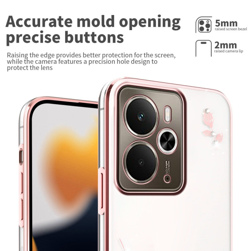 Découvrez notre coque élégante pour Realme 14T 5G / 14 5G. Avec des strass cristallins et des fleurs éternelles, cette protection allie luxe et durabilité. Le TPU de qualité militaire et les bords électroplaqués offrent une protection optimale contre les chutes jusqu'à 3,6 mètres. Ultra-mince et compatible avec la charge sans fil, elle associe style et praticité.
