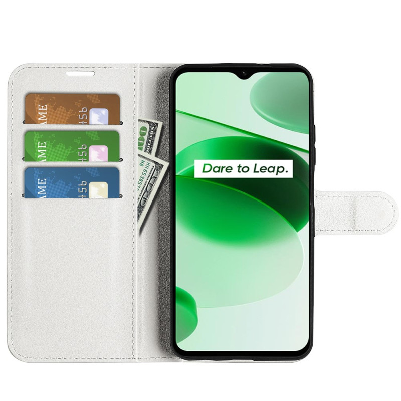 De Realme C35 zal zich veilig en zeker voelen in deze hoes met zijn lychee-textuur kunstlederen cover en zachte siliconen binnenhoes.