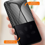 Drielaagse bescherming door een combinatie van koolstofvezelontwerp met kleurverloop en helder gehard glas. Ultradun profiel van 0,5 mm voor een absoluut lichtgewicht gevoel. Verhoogde randen beschermen scherm en camera's tegen krassen en stoten.