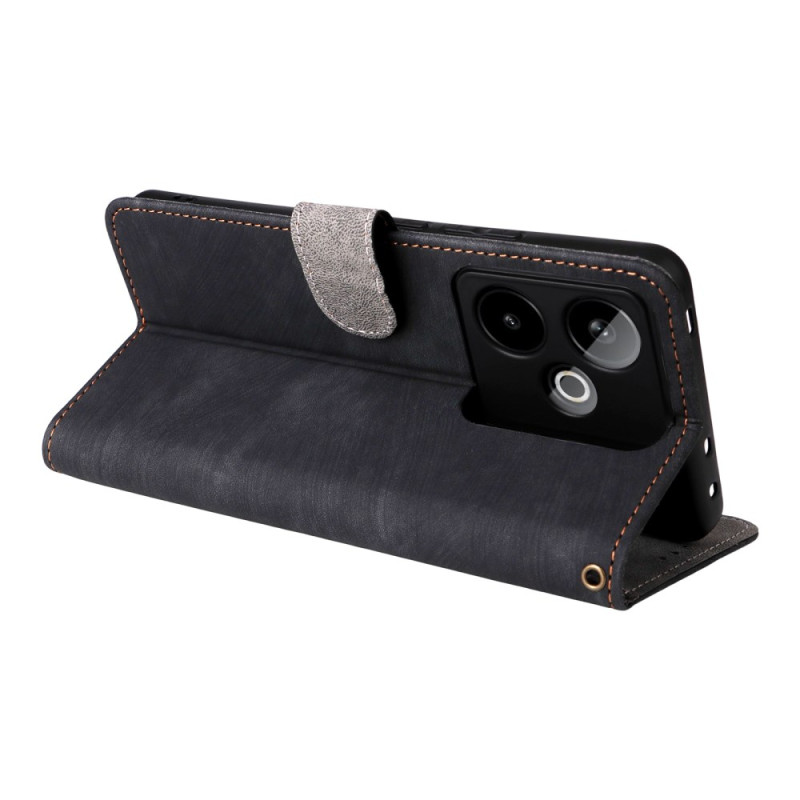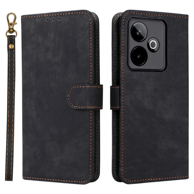 Multifunctionele portemonnee hoes voor de Realme GT 7 5G met geïntegreerde RFID-bescherming. Voorzien van 3 kaartsleuven, 1 geldvakje en een handsfree houder. Voorzien van een veilige magneetsluiting en een praktische handriem voor gemakkelijk dragen.