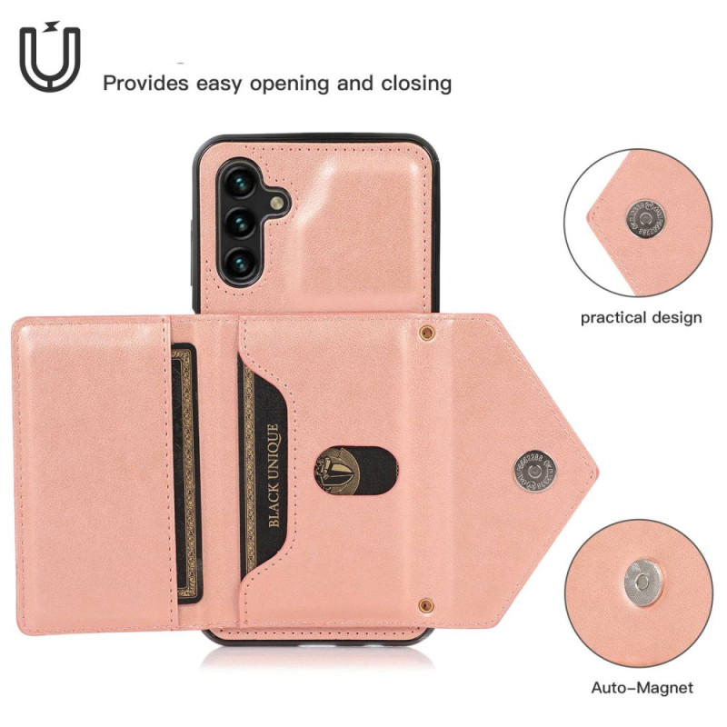 Ontdek onze hoes voor Samsung Galaxy A05s, met een kaarthouder, schouderriem en standaard.