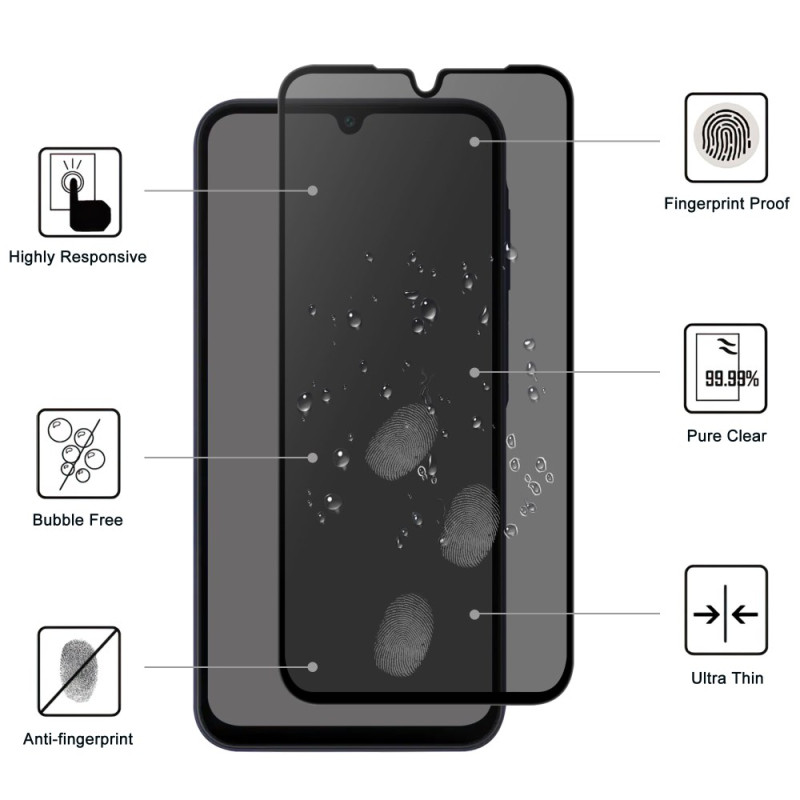 Bescherm je privacy met deze antispionagefolie van gehard glas. Met een hardheid van 9H en afgeronde randen van 2,5D biedt het optimale bescherming tegen nieuwsgierige blikken en krassen, en is het gegarandeerd eenvoudig te installeren.