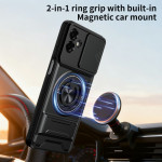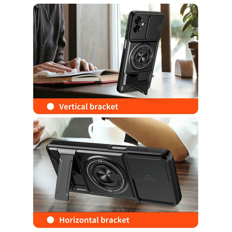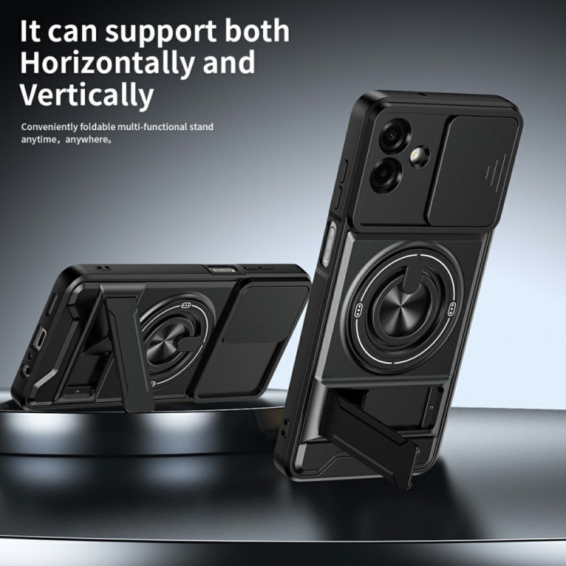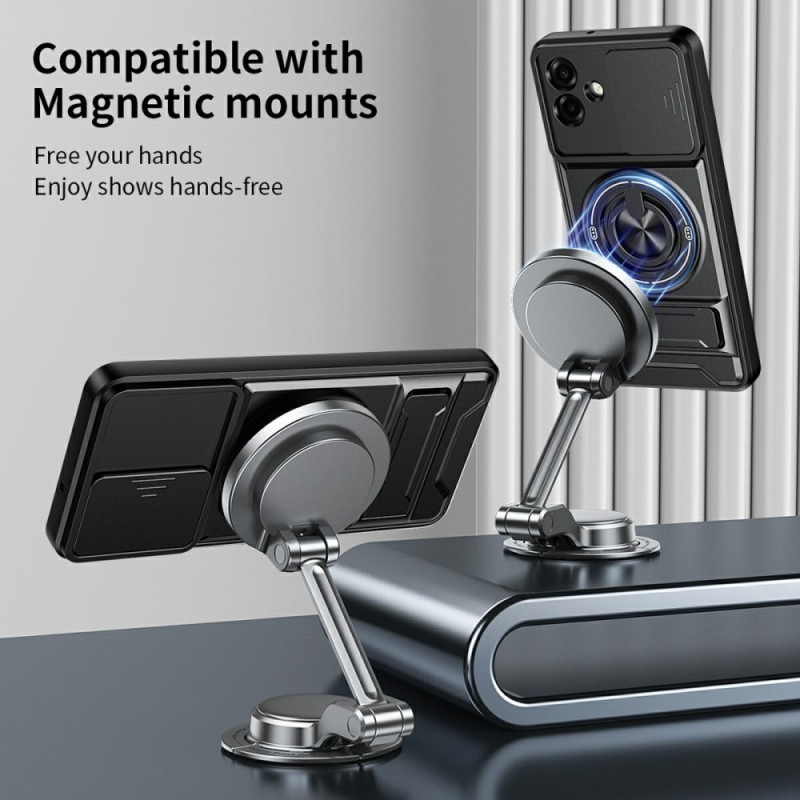 Bescherm uw Samsung Galaxy A07 5G / 4G met deze innovatieve magnetische hoes. Met een 360° draaibare steunring, een opvouwbare steun voor handsfree kijken en een verschuifbare camerabescherming combineert hij functionaliteit met optimale veiligheid.