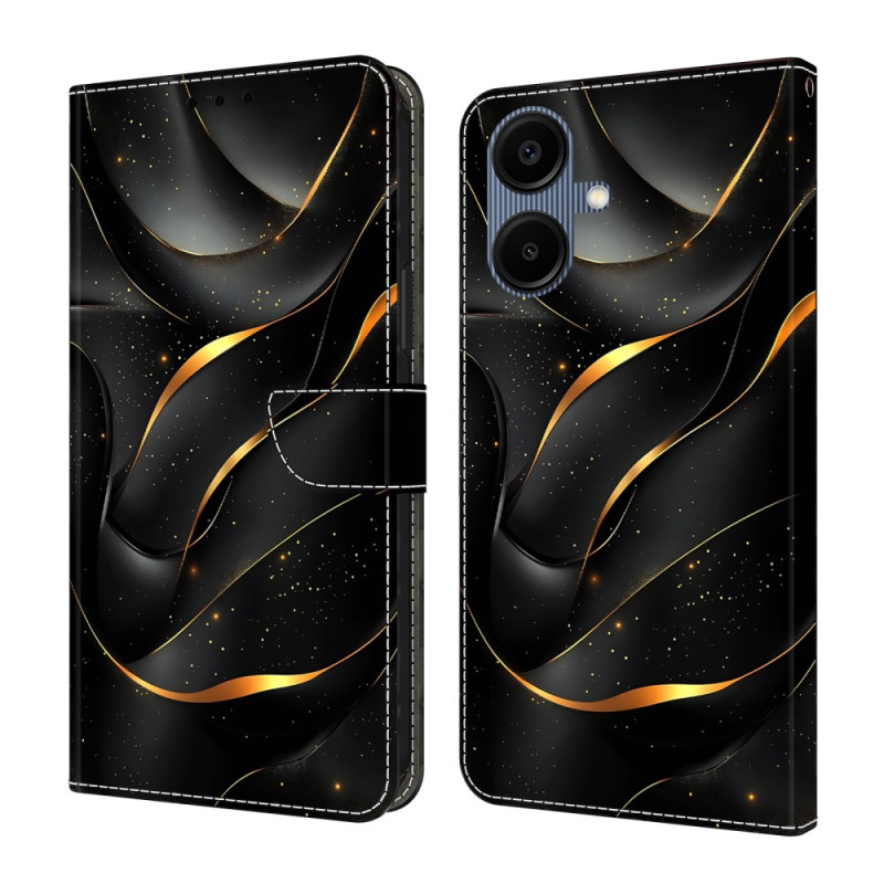 Ontdek deze elegante hoes met goudkleurig lintmotief voor uw Samsung Galaxy A07 5G / 4G. Met een praktische uitklapbare houder, 2 kaartsleuven en een notitievakje combineert hij stijl en functionaliteit. De veilige magnetische sluiting beschermt je telefoon elke dag.