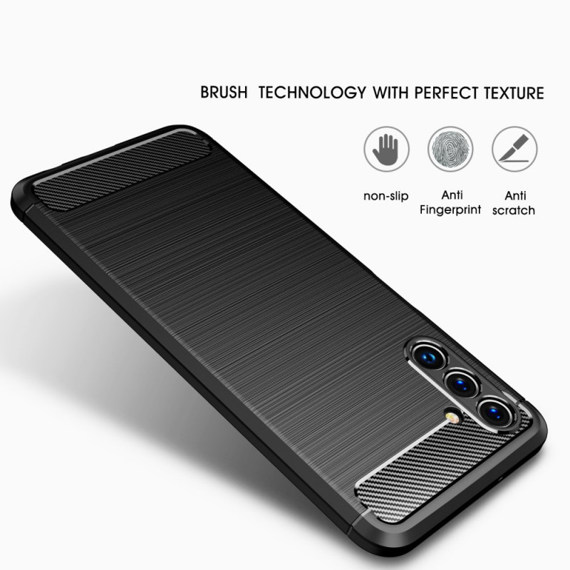 Je Samsung Galaxy A13 5G / A04s is een en al elegantie met het geborstelde koolstofvezel hoesje