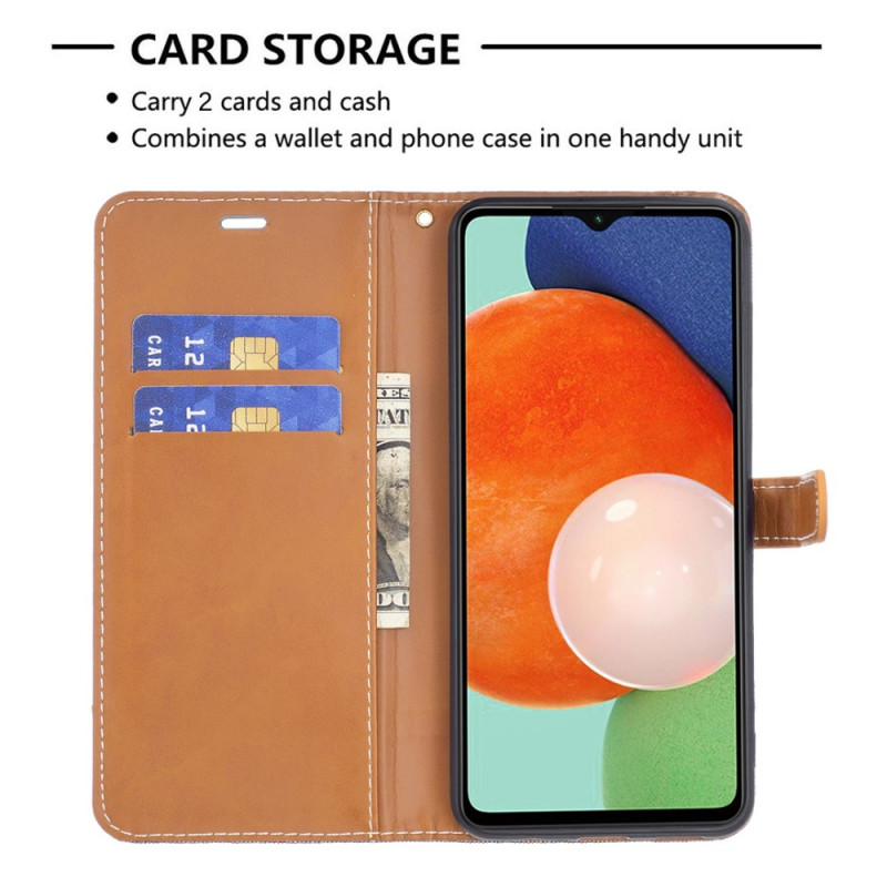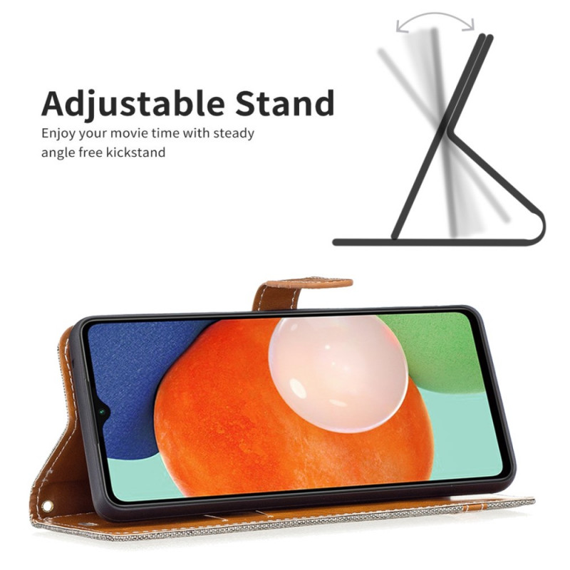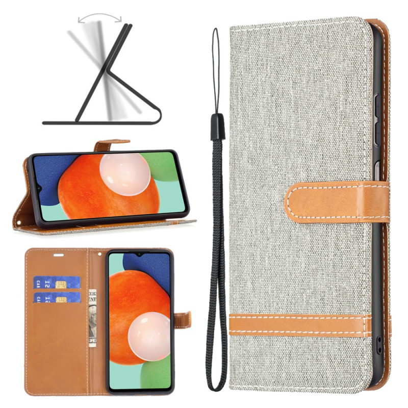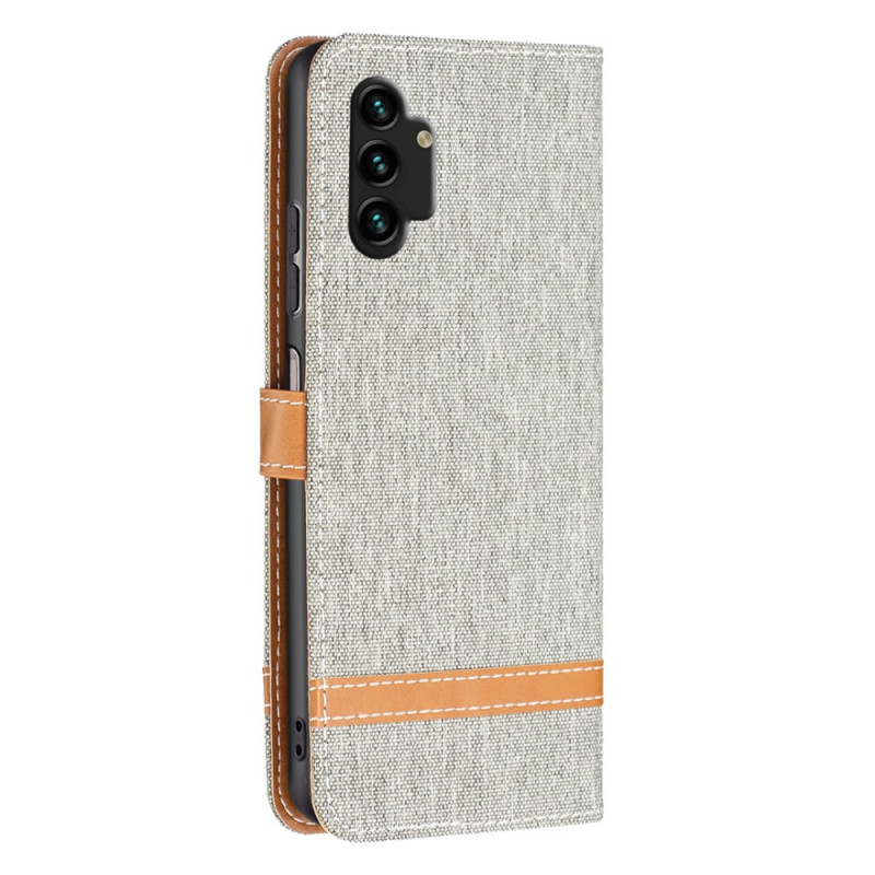 Een met stof beklede kunstlederen hoes die wordt geleverd met een riem om uw hele Samsung Galaxy A13 in stijl te beschermen.