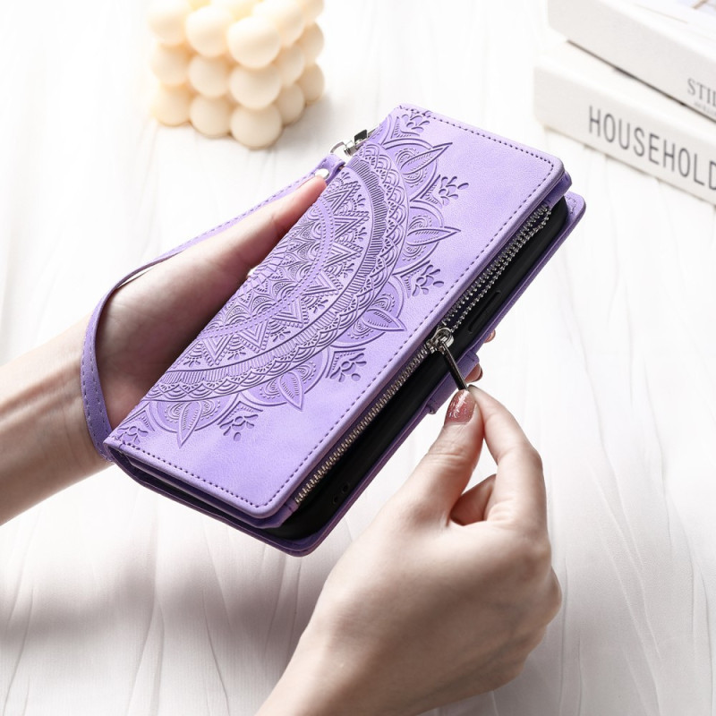 Deze Mandala Soleil multi-functionele case is perfect voor de Samsung Galaxy A14 5G / A14 met zijn talrijke kaarthouders.