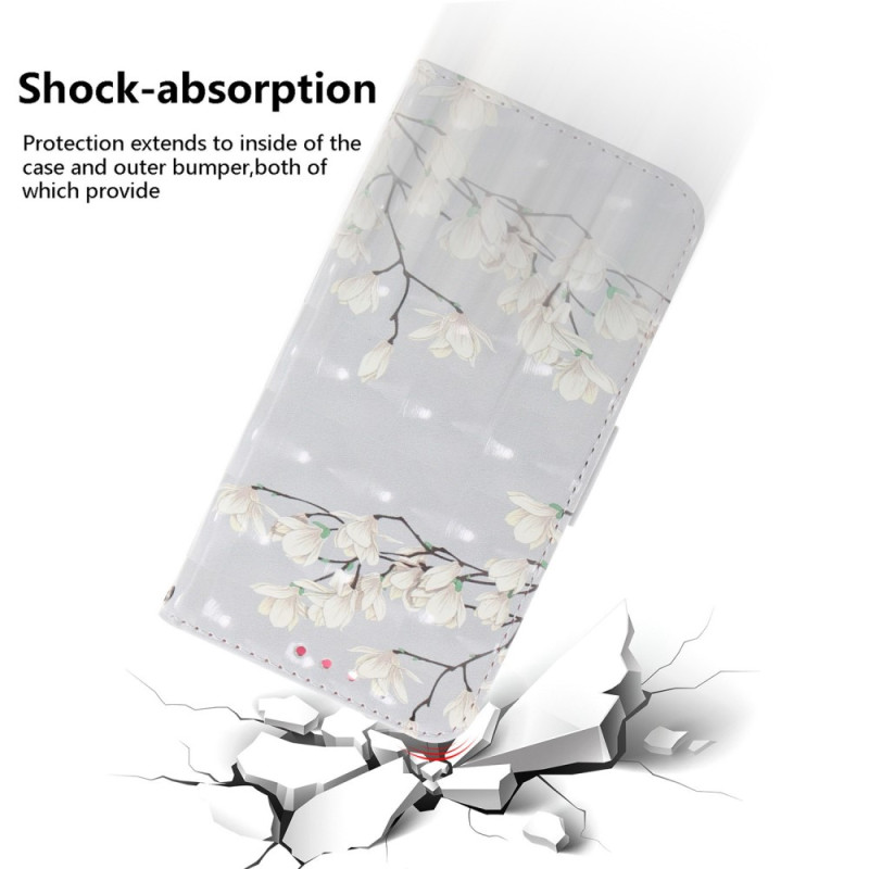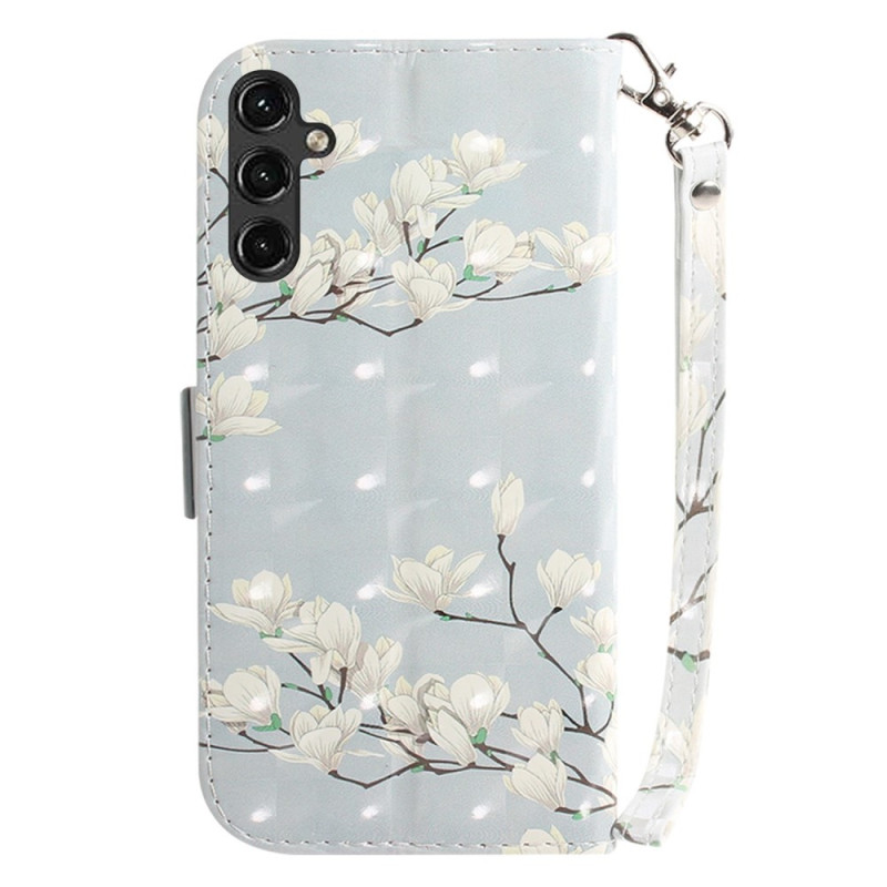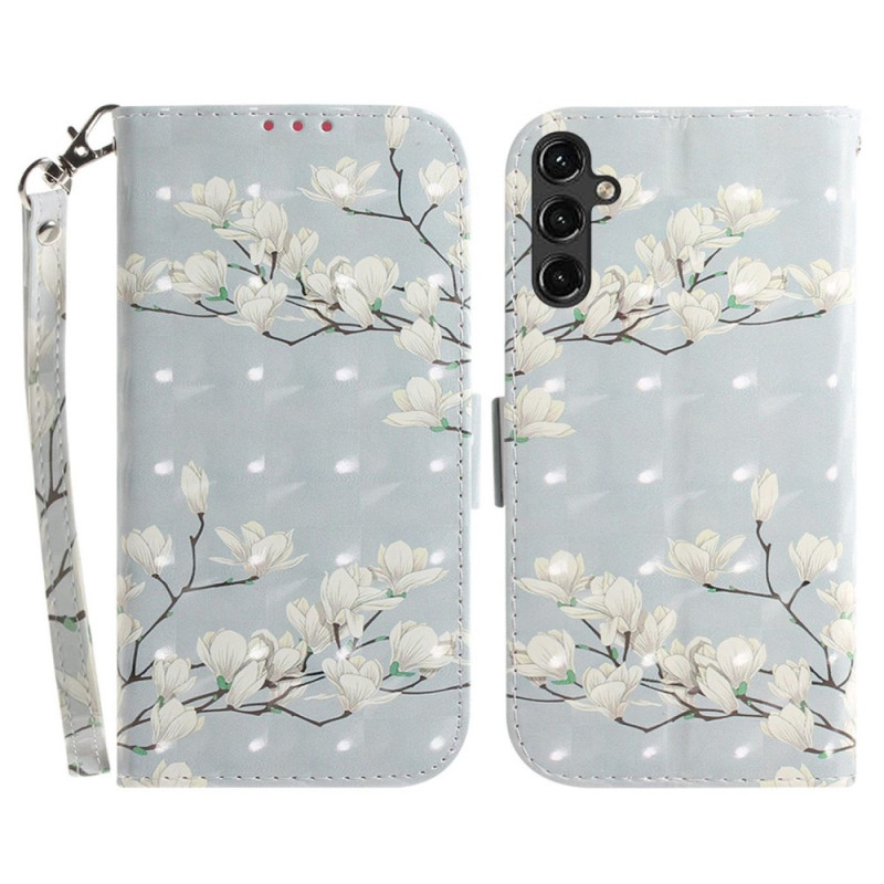 Uw Samsung Galaxy A14 5G / A14 is perfect beschermd met deze Flowery Branches kunstlederen hoes die is voorzien van een aangehechte band.