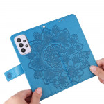 Dit hoesje voor Samsung Galaxy A33 5G, met zijn bloemenmandala, doet ook dienst als portemonnee en handsfree houder.