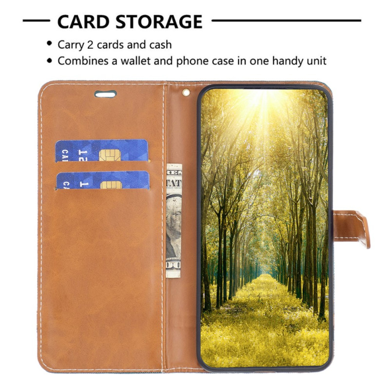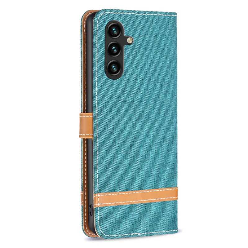 Dit stijlvolle en unieke hoesje voor de Samsung Galaxy A35 5G biedt dubbele bescherming met zijn contrasterende design en denim skin.
