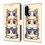 Étui portefeuille élégant avec motif chats empilés pour Samsung Galaxy A37 5G. Conception à rabat avec support pliable intégré, 2 emplacements pour cartes et compartiment à billets. Fermeture magnétique sécurisée pour une protection optimale.