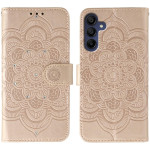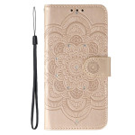 Bescherm je Samsung Galaxy A37 5G in stijl met deze flap cover met een verfijnd mandala motief en fonkelende strass-steentjes. Met 2 kaartsleuven, een geldvakje en een praktische polsband combineert hij stijl en functionaliteit voor dagelijks gebruik.