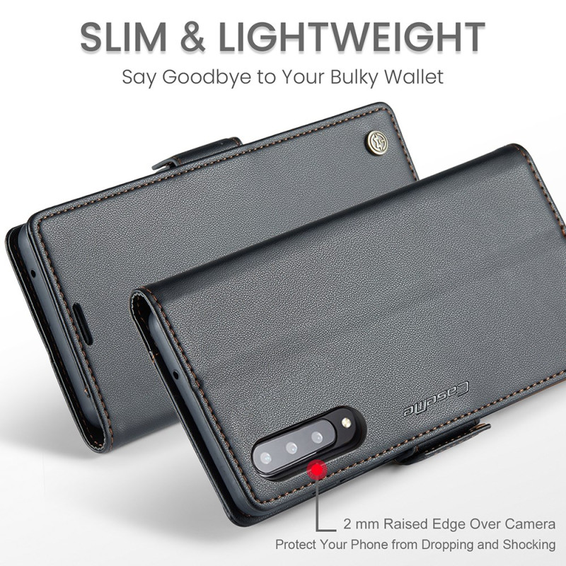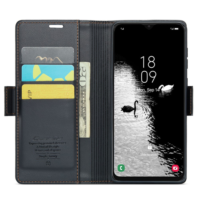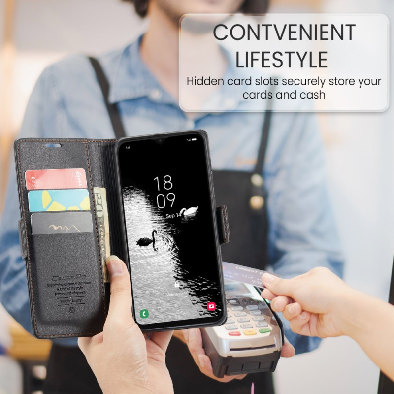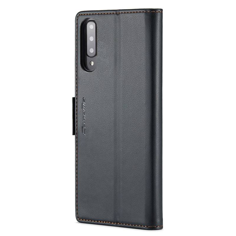 Ontdek onze eersteklas lederen hoes voor Samsung Galaxy A30s / A50 / A50s. Met geavanceerde RFID-blokkeringstechnologie biedt deze hoes volledige bescherming terwijl hij ook dienst doet als praktische portemonnee met 3 kaartsleuven. Dankzij de geïntegreerde standaard kun je handsfree kijken, terwijl het elegante ontwerp functionaliteit en stijl combineert.