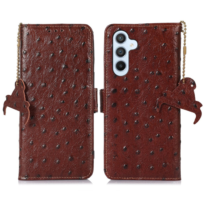 Ontdek onze hoes voor Samsung Galaxy A55 5G, met een struisvogeltextuur en RFID-blokkeringstechnologie.