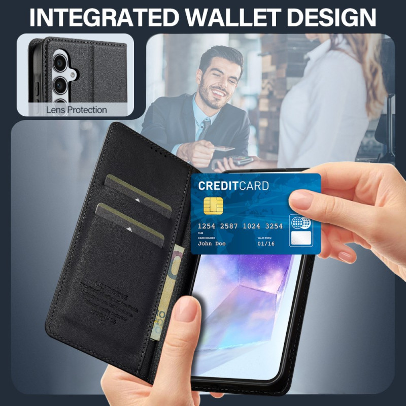 Bescherm je Samsung Galaxy A57 5G in stijl met deze multifunctionele portemonnee hoes. Robuust, militair gecertificeerd ontwerp, praktische geïntegreerde houder en opbergruimte voor pasjes en notities. Inclusief versterkte camerabescherming.