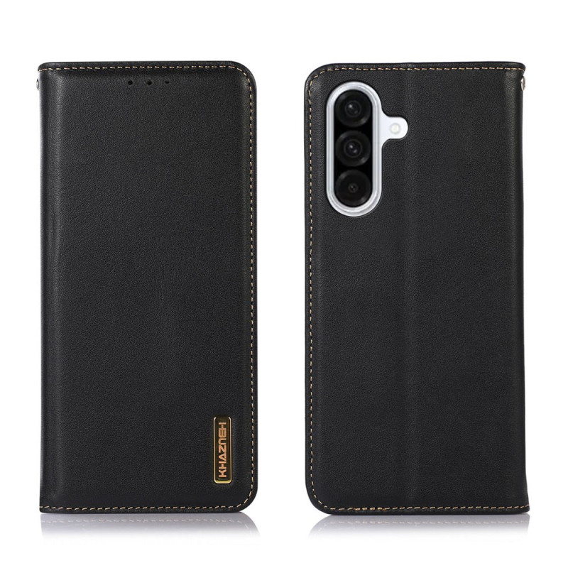 Premium portemonnee hoesje van echt rundleder met nappa-textuur voor Samsung Galaxy A57 5G. Combineert elegantie en functionaliteit met RFID-bescherming, geïntegreerde houder en veilige magnetische sluiting voor je pasjes en telefoon.