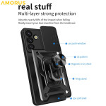 Bescherm je Samsung Galaxy A57 5G met deze stevige hoes met roterende kickstand en verschuifbare lenskap. Slagvast, krasbestendig oppervlak en geïntegreerde magnetische plaat voor bevestiging in de auto.