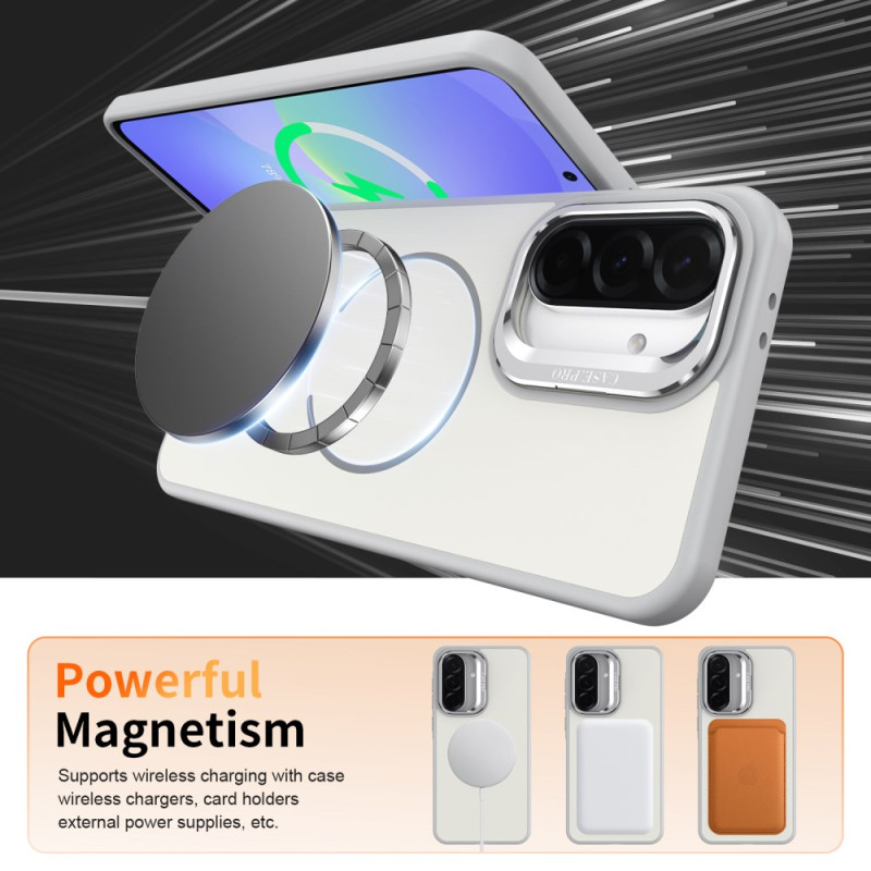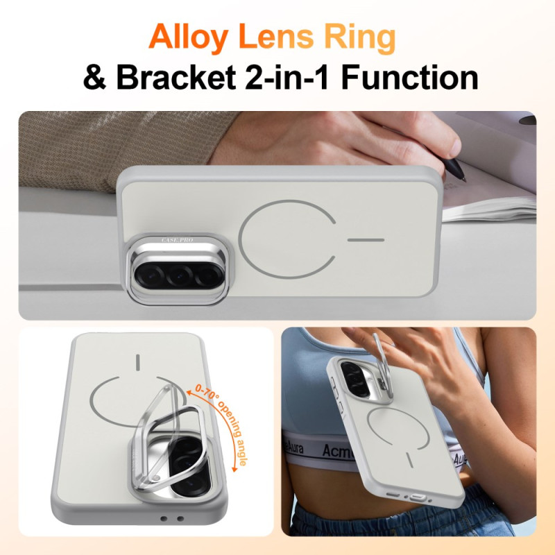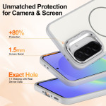 Volledige bescherming voor je Samsung Galaxy A57 5G. Hybride PC + TPU hoesje met geïntegreerde magnetische ring, opvouwbare kickstand en beschermend lensframe. Schokbestendig ontwerp met versterkte hoeken en volledige toegang tot functies.