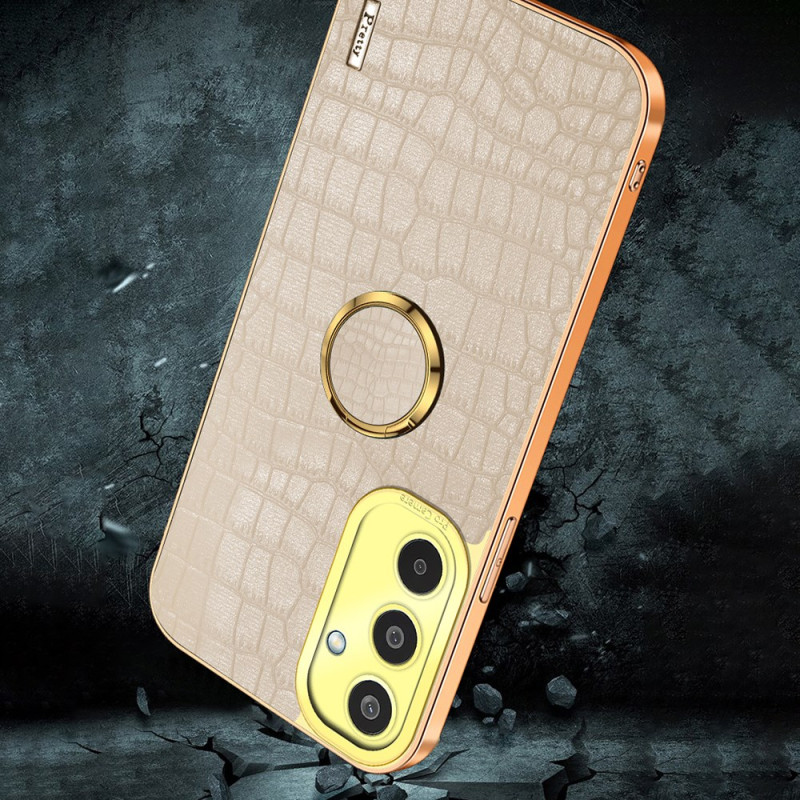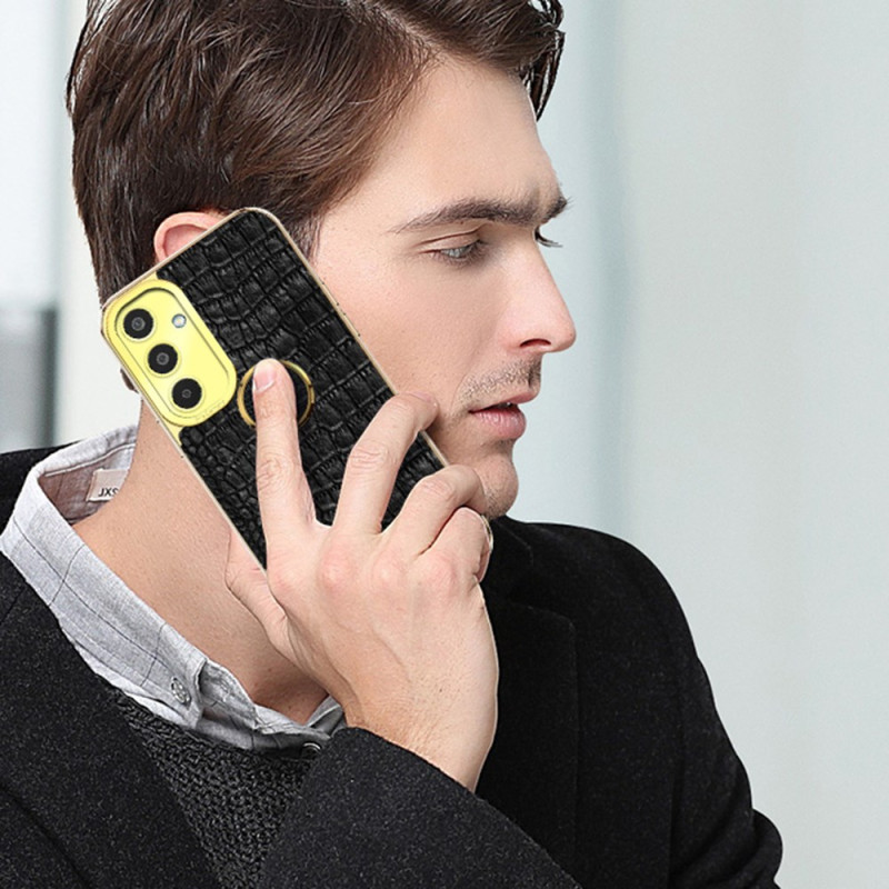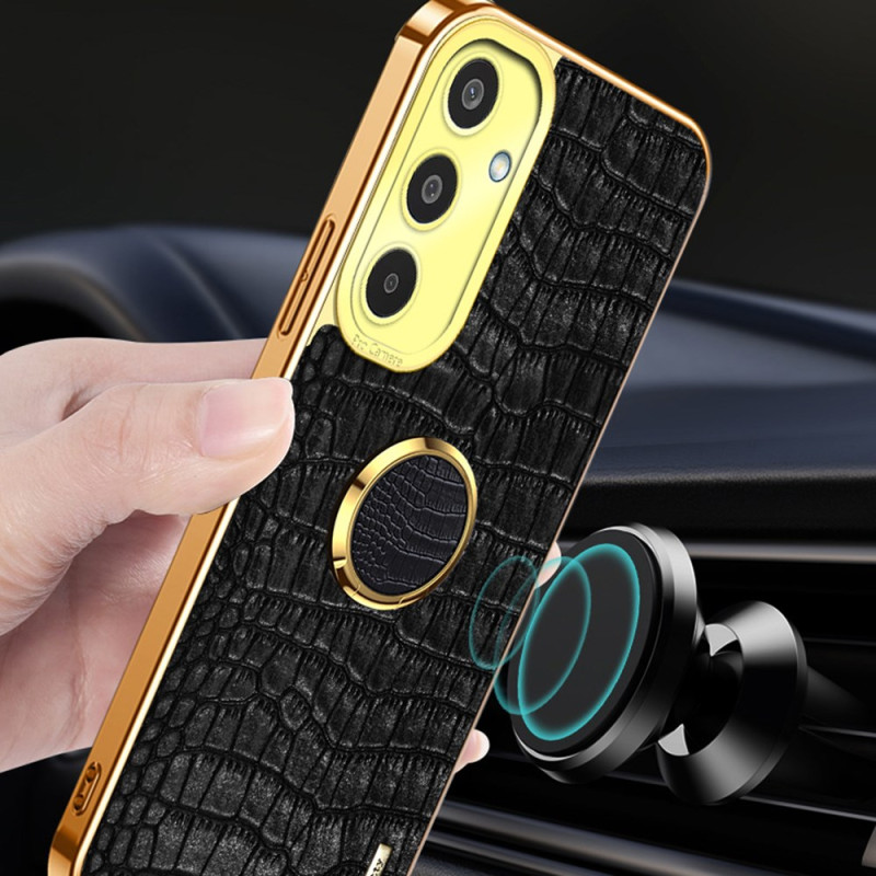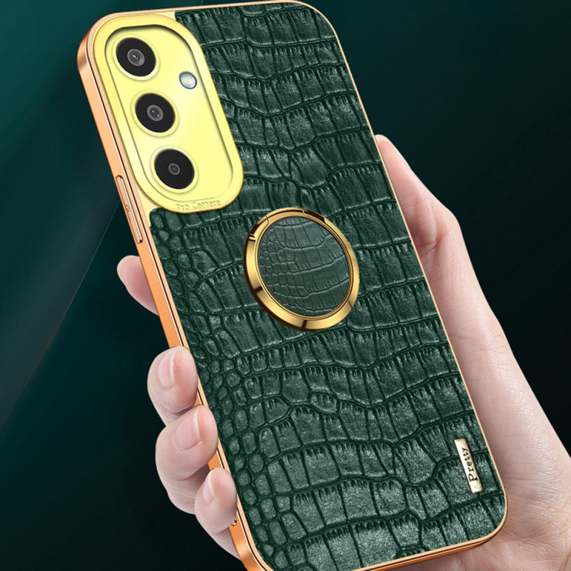 Ontdek onze elegante hoes voor Samsung Galaxy M35 5G, die stijl en functionaliteit combineert. Hij is voorzien van een praktische ringsteun en een luxe krokodillenstructuur en biedt volledige bescherming tegen dagelijkse slijtage.