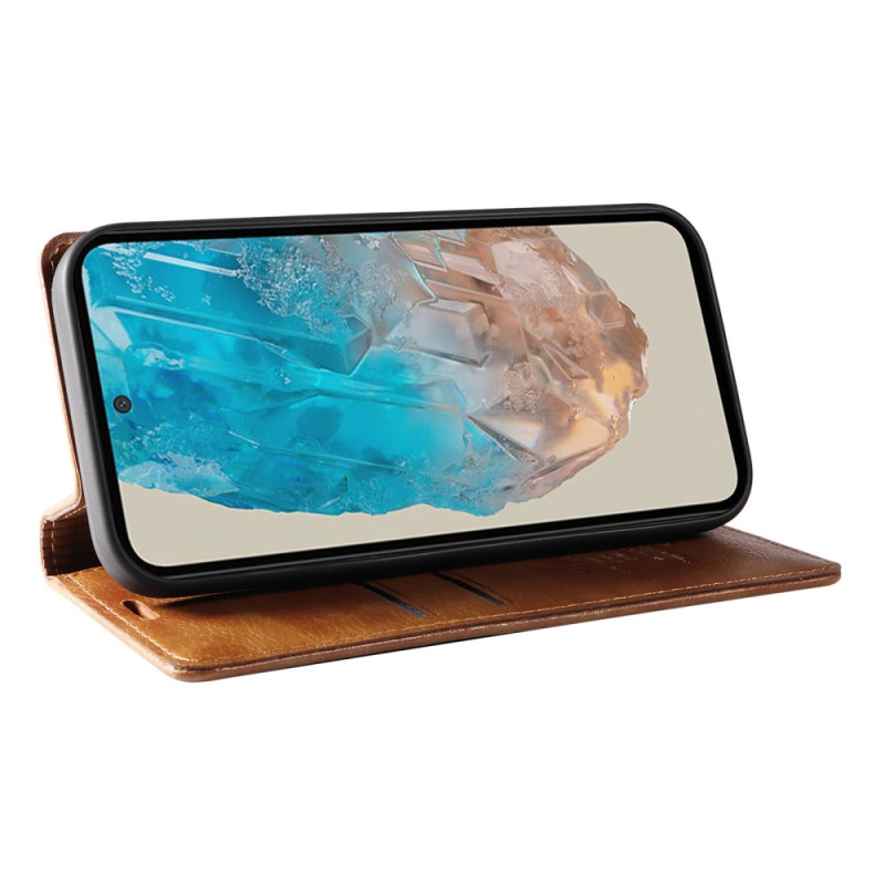Ontdek onze stijlvolle en praktische portemonneehoes voor de Samsung Galaxy M35 5G. Hij is gemaakt van hoogwaardig PU-leer met een lycheekorrelafwerking en biedt praktische opbergruimte voor je pasjes en geld.