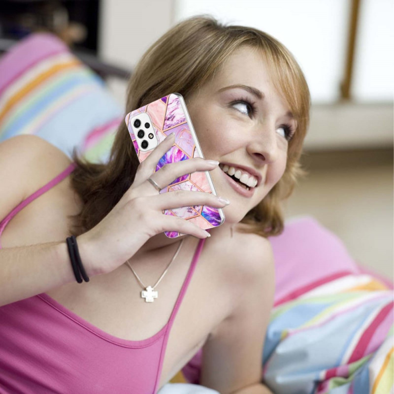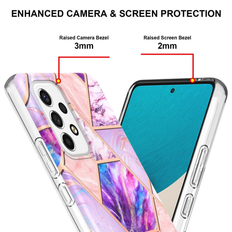 Een Flashy, marmer-achtige Geometrische hoesje ontworpen om uw Samsung Galaxy M53 5G te beschermen.