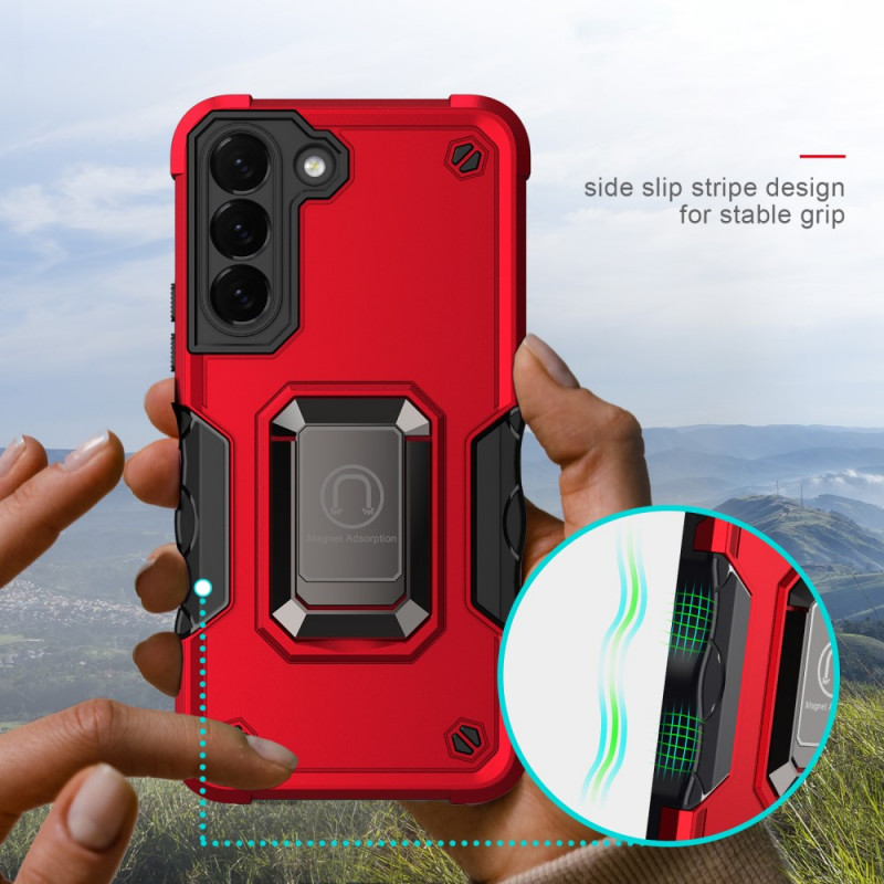 La coque hybride antidérapante, avec anneau-support, sécurise parfaitement le dos et les rebords de votre Samsung Galaxy S22 5G.