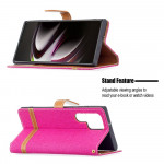 Deze case is ontworpen in deels stof en deels kunstleer voor uw Samsung Galaxy S22 Ultra 5G.
