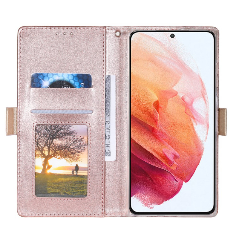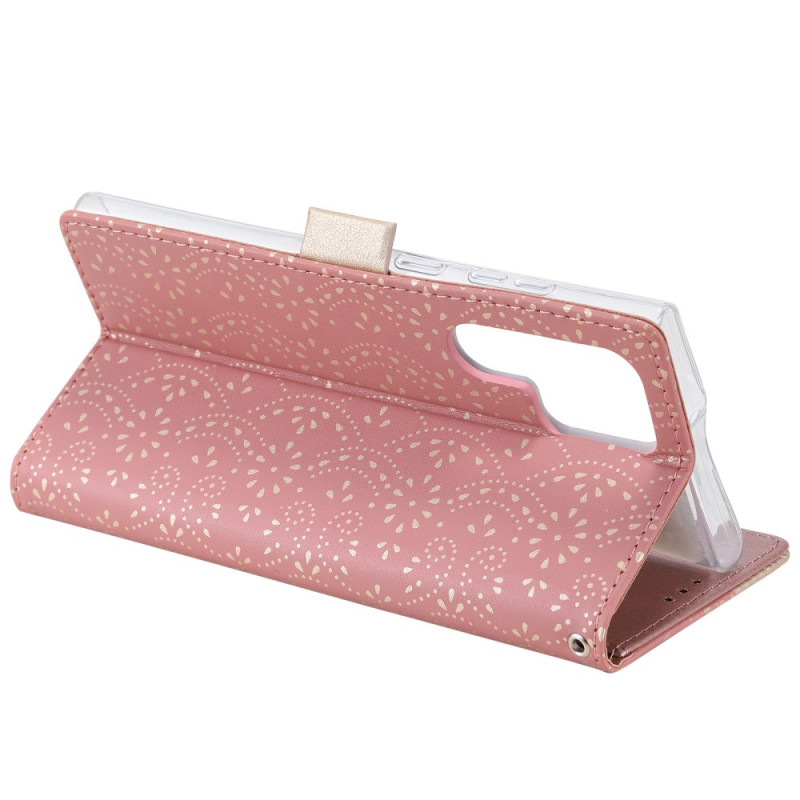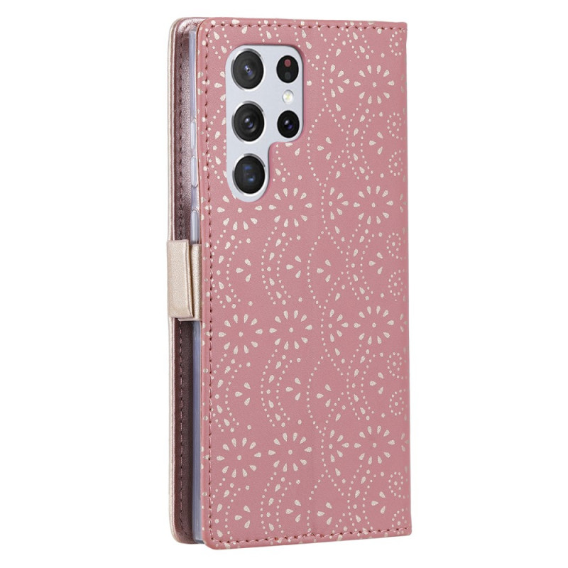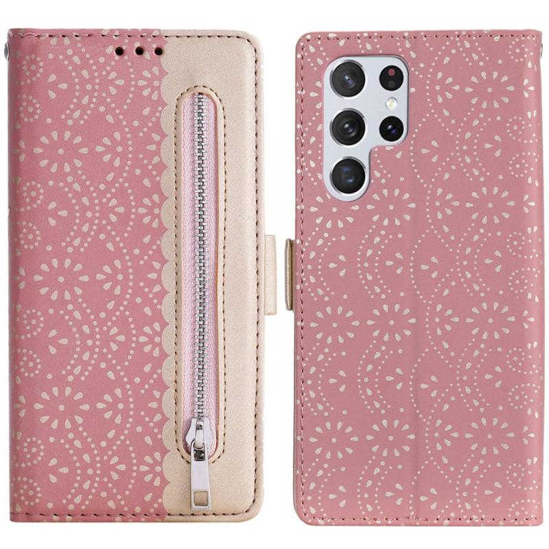 Bescherm uw Samsung Galaxy S22 Ultra 5G met deze Lace, Strap Wallet cover die designer multifunctionele beveiliging biedt.