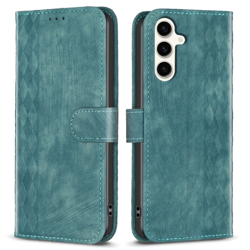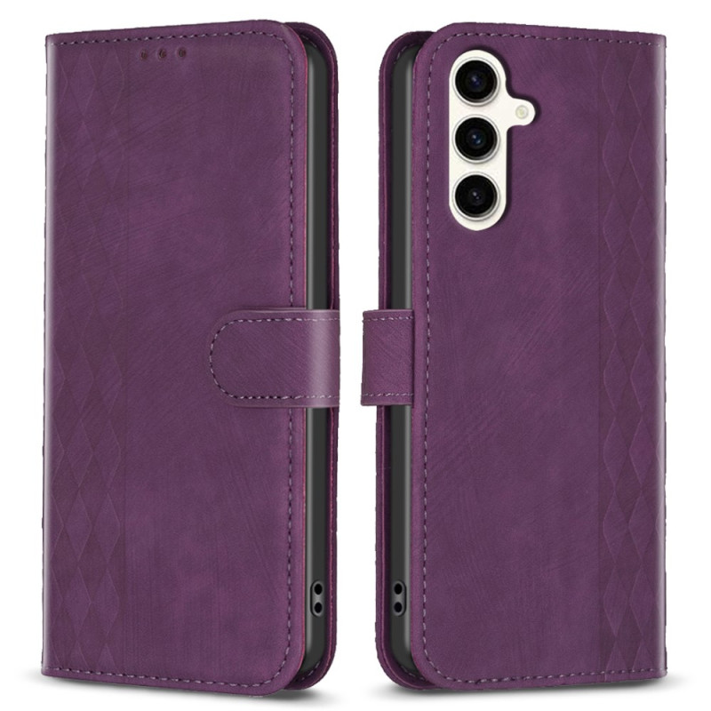 De leren hoes met geometrische rand biedt veelzijdige bescherming voor de Samsung Galaxy S23 FE.