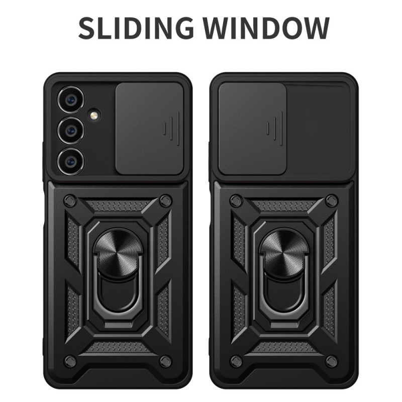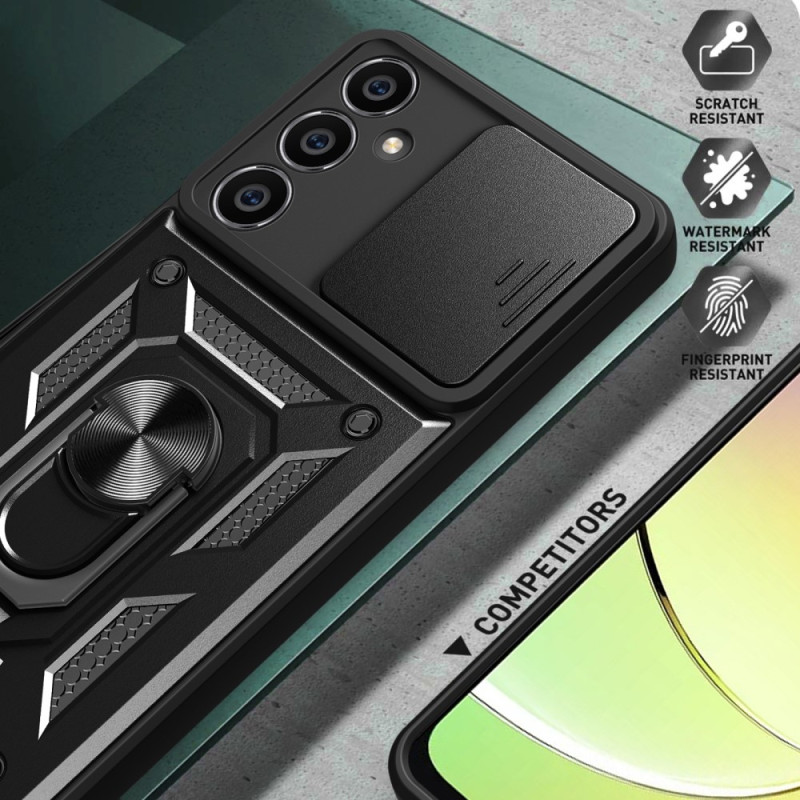 Geef je Samsung Galaxy S23 FE uitzonderlijke bescherming met deze indrukwekkende hoes met steunring en lenskap met rits.