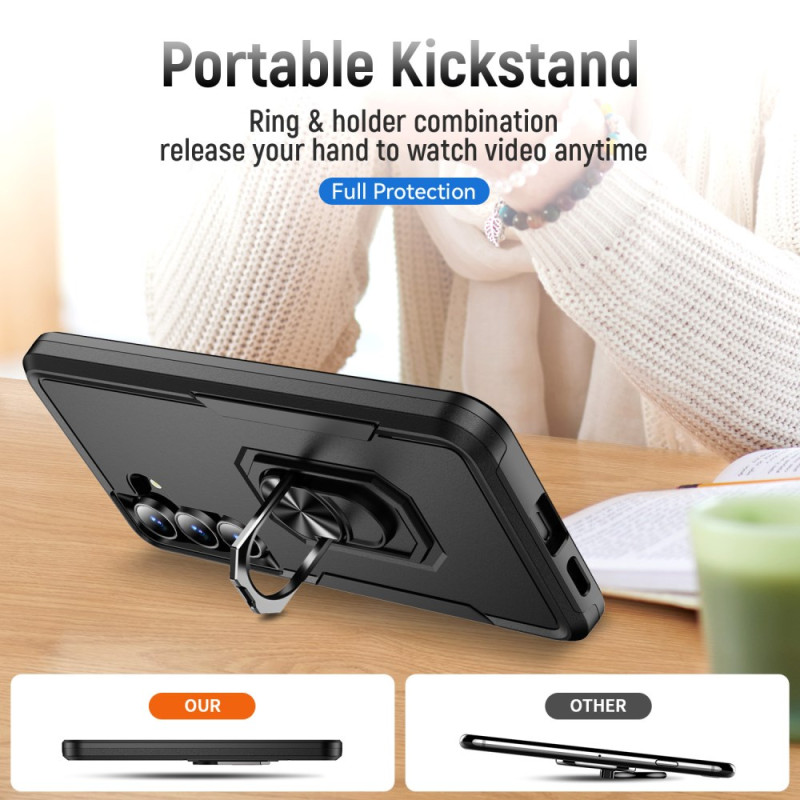 Ontdek onze militaire beschermhoes voor Samsung Galaxy S25 FE. Met een 360° roterende houder en een robuust ontwerp van PC en TPU biedt het optimale bescherming tegen vallen. Geniet van een comfortabele grip en compatibiliteit met magnetische autohouders.