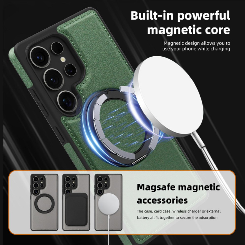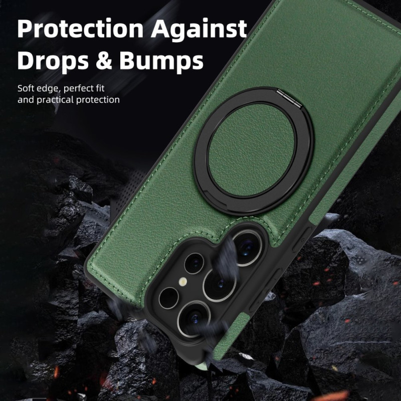 Ontdek onze innovatieve magnetische hoes voor Samsung Galaxy S25 Ultra. Het heeft een 360° draaibare ring en biedt robuuste bescherming dankzij de combinatie van TPU, PC en PU leer.