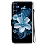 Elegant portemonnee hoesje met zwarte orchideeënprint voor Samsung Galaxy S26. Voorzien van een geïntegreerde standaard, veilige magneetsluiting, kaartsleuven en een praktische, afneembare handriem.