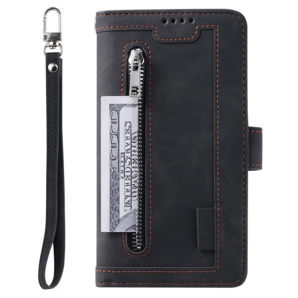 Multifunctionele PU lederen portemonnee hoes voor Samsung Galaxy S26 5G. Met 9 kaartsleuven, veilig ritsvak en praktische handriem. Ontworpen met handsfree ondersteuning en magnetische sluiting voor optimale bescherming.