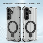 Protégez votre Samsung Galaxy S26 avec cette coque magnétique innovante. Dotée d'un support ajustable de 40 à 120 degrés, elle combine protection renforcée et praticité. Compatible avec les chargeurs et accessoires magnétiques pour une utilisation optimale au quotidien.