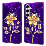 Bescherm je Samsung Galaxy S26 Plus in stijl met deze wallet case met klep versierd met prachtige gouden bloemen op een paarse achtergrond. Met een praktische uitklapbare houder en kaartvakjes combineert hij stijl en functionaliteit.