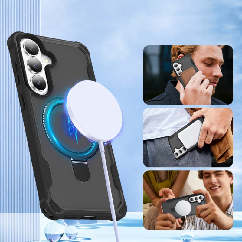 Bescherm je Samsung Galaxy S26 Plus met deze magnetische hoes met geïntegreerde kickstand. Het tweelaagse antischokontwerp biedt optimale bescherming tegen vallen en krassen, terwijl het magnetische compatibiliteit biedt voor je accessoires.