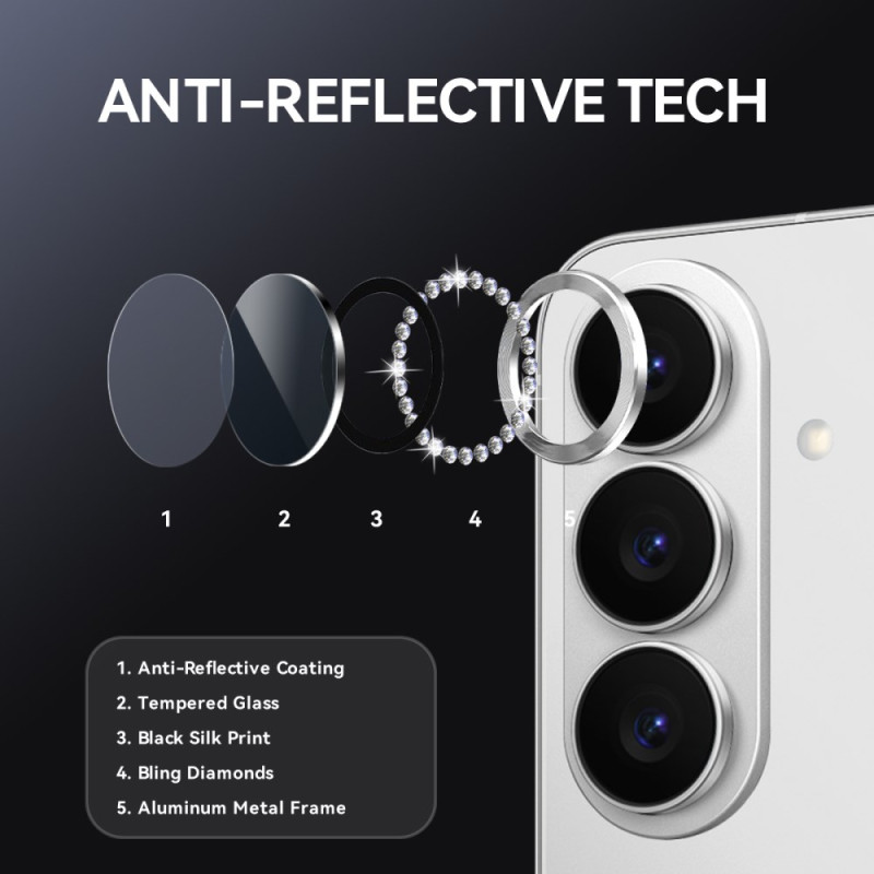 Protégez l'objectif de votre Samsung Galaxy S26 Plus avec style grâce à ce film protecteur en verre trempé orné de strass étincelants. Offre une couverture complète, une clarté cristalline et une protection supérieure contre les rayures.