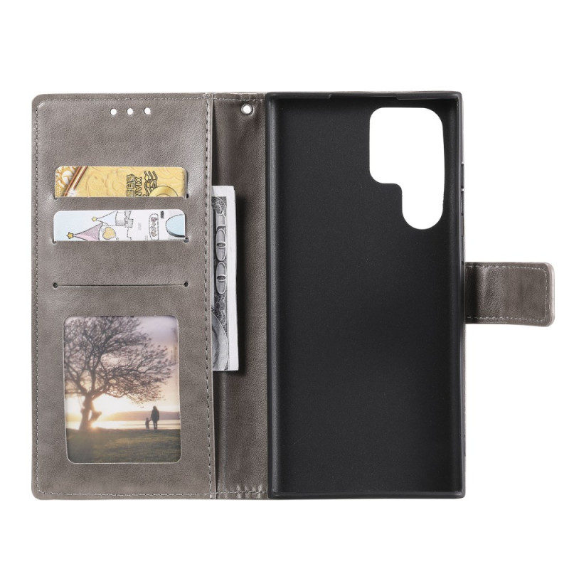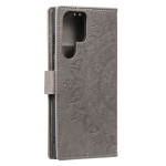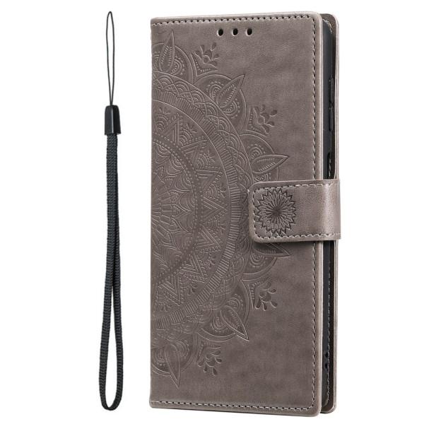 Elegant portemonnee hoesje voor Samsung Galaxy S26 Ultra met bedrukt mandala motief. Voorzien van een verstelbare houder, kaartsleuven en een praktische handriem. Volledige bescherming en verfijnd ontwerp voor je smartphone.