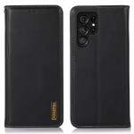 2-in-1 portemonnee hoesje van echt rundleer met nappa-textuur voor Samsung Galaxy S26 Ultra. Geniet van volledige bescherming met RFID-technologie, geïntegreerde houder en veilige magnetische sluiting voor je pasjes en telefoon.