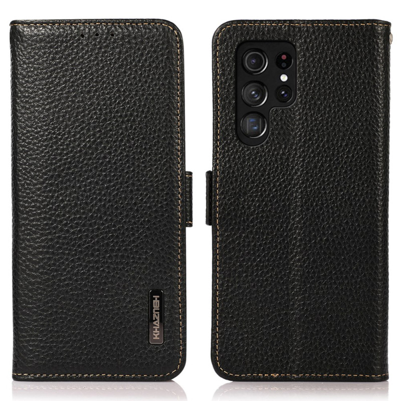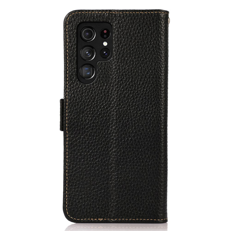 Verfijnde echt lederen hoes met lychee textuur voor Samsung Galaxy S26 Ultra. Geniet van geavanceerde RFID-bescherming, handige kaartsleuven en een converteerbare standaard om je content in alle vrijheid te bekijken.