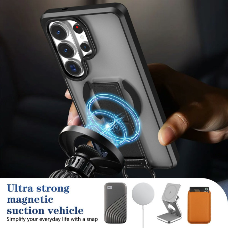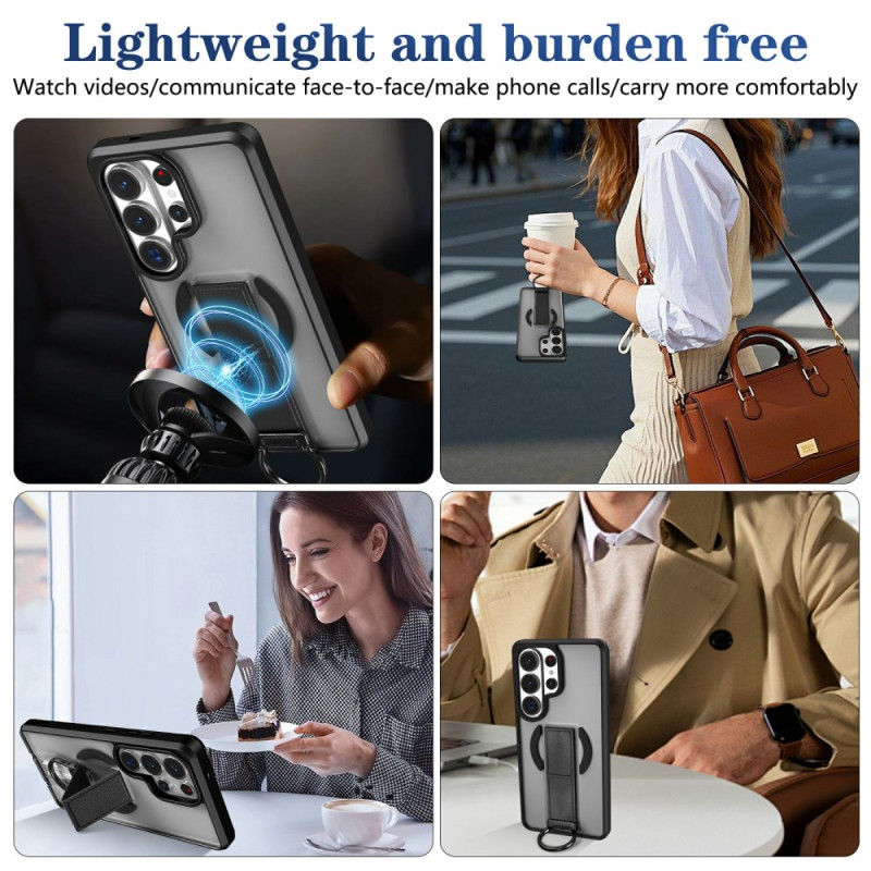 Protégez votre Samsung Galaxy S26 Ultra avec cette coque magnétique innovante. Elle intègre un support pliable pour visionner vos contenus en mode mains libres et un anneau rotatif pour une prise en main sécurisée. Compatible avec les chargeurs magnétiques.