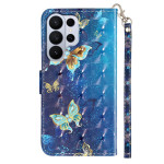 Protégez votre Samsung Galaxy S26 Ultra avec élégance grâce à cet étui portefeuille au design 3D de papillons bleu et or. Doté de fentes pour cartes, d'une fonction support ajustable et d'une dragonne pratique, il allie style et fonctionnalité...