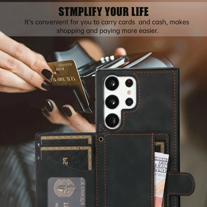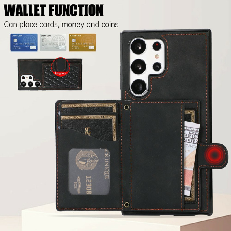 Protégez votre Samsung Galaxy S26 Ultra avec cette coque élégante en cuir PU et TPU. Design matelassé sophistiqué avec porte-cartes intégré et support ajustable. Fermeture magnétique sécurisée et protection complète contre les rayures.