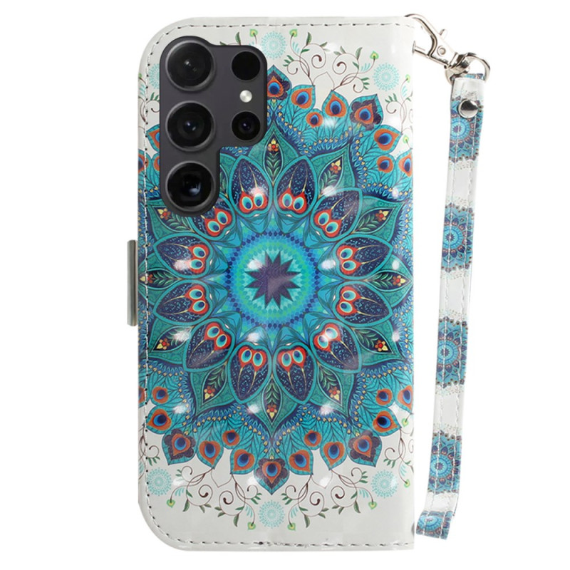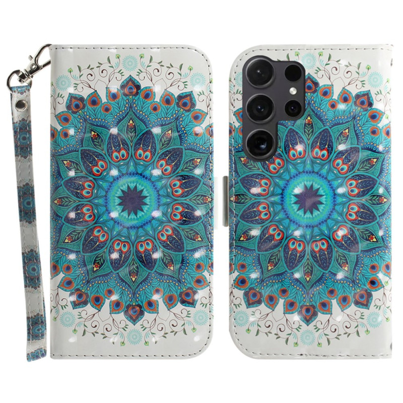 Découvrez cet élégant étui portefeuille pour Samsung Galaxy S26 Ultra orné d'un motif couronne de paon. Doté de compartiments pour cartes, d'un support pliable et d'une dragonne pratique, il allie style et fonctionnalité tout en protégeant votre téléphone au quotidien.